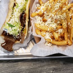 The best fast food gyro I have ever had!! I ordered the Detroit gyro with chicken and it was incredible. Fries were thick which isn't my preference but still good nonetheless. I will definitely make every effort to stop here that I can. They do offer indoor seating. I suggest that if you order to-go to not wait too long after pickup to eat or else the pita will get soggy and start to fall apart. I will definitely be back and hope they open up more locations in the area!